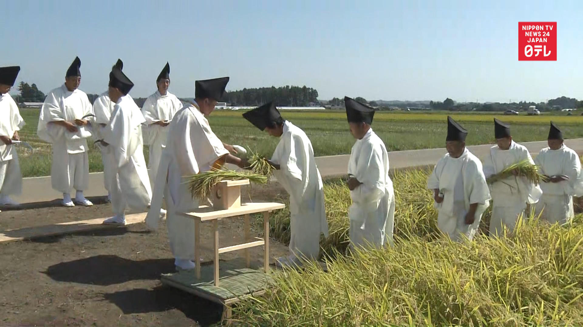 Ceremonies to harvest rice for use in the Daijosai imperial rite in November are held at two rice paddies in Japan.