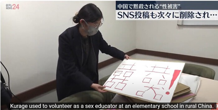 Kurage used to volunteer as a sex educator at an elementary school in a rural China. There, she saw that sexual abuse of children was rampant.