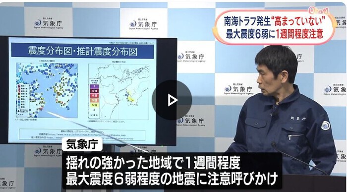 Japan Meteorological Agency said in the press conference that the earthquake occurred within the assumed epicenter of the Nankai Trough and that the possibility of the occurrence of a huge earthquake has not increased.