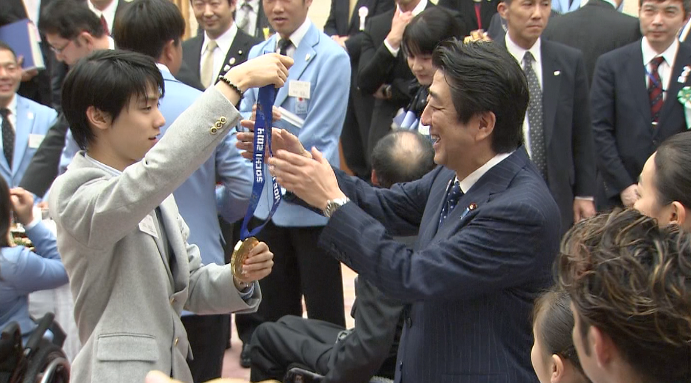 The medalists all received a silver photo frame from Prime Minister Abe.