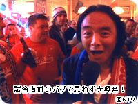 チェルシーとの試合当日―――試合直前、スポーツニュース用のレポートでスタジアムに隣接するパブに行ったら、もう大変!熱狂的なサポーターがキックオフ前からヒートアップ。初対面の僕も輪の中に引き釣り込み、応援歌を大合唱。レッズサポーターの熱狂度はすごいとの話は聞いていましたが、ホント地球一のサポーターですよ。 そして、いよいよアンフィールドへ。 まず驚いたのが、スタッフと僕の席がなんと一番前。少し手を伸ばせば、そこはもうピッチ。芝が触れます。イングランドは他のヨーロッパの国と違って、フェンスがない。 元選手だったことも忘れて興奮してしまいました。試合は、一番序盤はプレミア連覇を目指し、今季も勢いのあるチェルシーのペース。前半27分にチェルシーに先制を許しますが、やはり「あの男」が決めてくれました。前半36分、コーナーキックから流れてきたボールを逆サイドに走りこんでいたジェラードがゴール隅に豪快にゴール!あのイアンも絶賛していた、インサイドキックから放たれる正確無比で強烈なシュート。