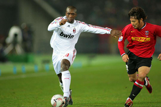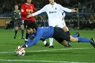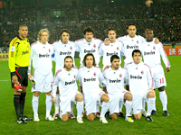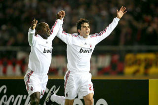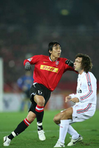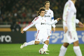 ![]() 日本のクラブチームが、公式戦でヨーロッパのクラブと対戦するのは史上初! アジア王者の浦和レッズが、ヨーロッパ代表のACミランと対戦する準決勝第2戦。 勝った方が、ボカ・ジュニアーズとの決勝戦へ進む。 そのボカのメンバーは、この試合を視察に訪れていた。 浦和レッズは準々決勝のセパハン戦からメンバーを代えず、FWワシントンとFW永井が2トップ。 MF鈴木啓太とMF阿部が守備的MFに入り、トップ下にMF長谷部、セパハン戦で先制アシストをした相馬も代わらず左サイド。 対するACミランは、1トップにFWジラルディーノを置き、その後ろにFWカカとMFセードルフが並ぶ。 DFマルディーニはベンチスタート、キャプテンマークはMFアンブロジーニに託された。 この日は、浦和レッズが赤の正ユニフォームで、ACミランはサブの白。 ACミランにとっては、ヨーロッパチャンピオンズリーグを勝ち抜いた縁起のいいサブユニフォームでもある。 ![]() 7時30分、歴史的一戦は浦和ボールでキックオフ! 前半4分、浦和レッズはヨーロッパ王者にひるむことなく、果敢にゴールを狙う。 DF闘莉王が攻撃参加、パスを受けたMF阿部がロングシュート!これは大きく外れる。 7分、今度は中央でMF長谷部がミドルシュート!GKジダが正面でキャッチ。 9分、ACミラン。左サイドからアーリークロス。 FWジラルディーノがゴール前で待っていたが、これはDF坪井が戻りながらヘディングでカット。 10分、MFピルロが最終ライン裏のMFセードルフにドンピシャのパス! MFセードルフはボレーシュートを狙うが、合わない。 13分、ACミランはゴールまで距離がある位置だったが、中央左でFKをゲットする。 キッカーはピルロ!これはGK都築がはじき出す。 続く左CKからのハイボール、ゴール前のMFアンブロジーニがヘディングシュート!しかし、これはゴール右。 ![]() 15分、再びACミラン。素早いパス回しから、抜け出したDFオッドがクロス。 FWカカがヘディングであわせようとするが、高さが合わず。 21分、DFオッドの右からのフィードをFWジラルディーノが落とすが、味方とは合わない。 23分、FWカカが中央からドリブル突破。 浦和DF陣を抜き去って、ペナルティーエリア右のMFセードルフにスルーパスを出す。 MFセードルフのシュートは、GK都築が正面でセーブ! ![]() 26分、MFピルロがドリブルで切り込むが、倒されてFKに。ペナルティエリア外、右45度からのFK。 DFヤンクロフスキが左足で直接狙うが、浦和DFの壁に当たる。 27分、今度は左サイドから。FWカカが低いクロス、中央にいたDFヤンクロフスキが飛び込む。 こぼれたところにFWジラルディーノ!シュートを狙うもジャストミートせず。 我慢の時間が続いた浦和レッズだったが、27分にようやくチャンスを作る。 カウンターから左サイドのDF相馬へスルー。 パスを受けたDF相馬は低いクロスをゴール前に折り返し、ゴール前にはFWワシントン! しかし、DFにカットされる。 29分、ACミラン。左45度からのFK、ゴールまでは25メートル! MFピルロが直接シュートを放つが、ゴール上。 31分、ペナルティエリア手前、FWカカからパスをもらったMFアンブロジーニがシュート! 浦和のDFに当たってこぼれたボールに、FWジラルディーノがすばやく反応するがわずかに合わない。 その直後、浦和レッズはFW永井がロングシュート! ![]() 35分、FWカカが、最終ライン裏のFWジラルディーノにスルーパス。 しかし呼吸が合わず、クリアボールにFWカカ自ら走り込むが、これを浦和DF坪井が、体を張ってクリア。 36分、浦和レッズは右サイドにいたMF鈴木啓太がダイレクトで左サイドのDF相馬へ。 DF相馬はドリブルで仕掛け、ペナルティエリア外からシュート!積極的な姿勢をみせる。 41分には、浦和レッズが組織的な崩しを見せる。 FWワシントンがドリブル、左サイドへ展開しクロスをあげる。 ペナルティエリアで待ち構えていたFW永井がボールを落とし、走り込んできたMF鈴木啓太がシュート! しかし、力が入らず、GKジダが難なくキャッチ。 43分、ACミラン。右サイドのDFオッドがアーリークロス。 ゴール前にMFアンブロジーニ!ヘディングシュートは、DF闘莉王が競り勝ってクリア。 DF闘莉王は体を張ったプレーで、再三ピンチを防ぐ。 44分には、DFヤンクロフスキーがドリブルで上がり、中央から左足のミドルシュート。 ロスタイム、浦和レッズは左サイドをDF相馬がドリブル、DFを引き連れてマイナス方向へのパス。 MF長谷部が中央に切り込んでミドルシュートを放ったが、枠を捉えられず。 浦和レッズは、ACミランの怒とうの攻撃をギリギリの所で防ぐが、攻撃へ転じることが出来ず、苦しい展開。 スコアレスドローで前半を折り返す。 ![]() 後半に入ると、完全にACミランペースとなった。 後半3分、ACミランはFWカカがボールをキープ。 ペナルティエリア手前でパスを受けたMFガットゥーゾから左サイドへ。 待っていたDFヤンクロフスキがダイレクトで、クロス。 シュートとも思える、きわどいクロスだったが、誰も詰めておらずラインを割る