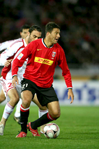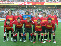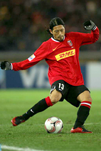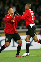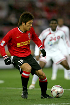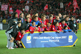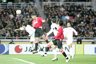 ![]() アジア勢としても最高となる世界3位を目指す浦和レッズ、実に今シーズン52戦目となる最終戦。この試合を最後に、浦和レッズを退団するFWワシントンにとっては、これがラストマッチ。けがで欠場となったDF闘莉王に代わり、阿部がセンターバックに入り、MF山田がスタメン出場。対するアフリカ王者のエトワール・サヘルは、19歳FWシェルミティのゴールに期待がかかる。 ![]() 試合は、エトワール・サヘルボールでキックオフ。 開始4分でいきなり浦和レッズがピンチを迎える。エトワール・サヘルのロングパスをFWシェルミティと競り合ったDF坪井がクリアしきれない。ペナルティエリアに入ったところで、DF坪井が後ろから倒してしまい、PKを与えてしまう。これで、坪井にはイエローカード。 前半5分、このPKをDFフレジが豪快に蹴り、GK都築が右手でわずかにはじくも及ばず。 エトワール・サヘルが先制する。 さらに10分、中央からMFメリティがミドルシュート!これは、ゴール右。 浦和レッズがチャンスを作ったのは19分過ぎ。 右サイドでFW永井から、パスを受けたMF細貝がクロス。FWワシントンがゴール前で待っていたが、サヘルDFにクリアされる。 23分には、FW永井が中央をドリブル突破、ミドルシュート!力が入らず、GKがキャッチ。 逆に25分、エトワール・サヘルが中盤で素早い飛び出しからボールを奪う。 右サイドのMFメリティがシュート。GK都築がパンチングでクリアする。 30分を過ぎると、ようやく浦和レッズは頼みのFWワシントンにボールが集まり始める。 31分、ペナルティエリア内での競り合いから、こぼれたボールにFWワシントン! 詰めるが、サヘルDFが身を挺してクリアする。 33分、ペナルティエリアのFWワシントンを狙ってロングボールを入れるが、FWワシントンはサヘルDF陣の徹底マークにあい、ボールをトラップできない。 ![]() しかし、その2分後に待望のゴールが生まれる。 35分、右サイドのMF山田がクロス。こぼれ球を拾ったMF相馬が左サイドからクロス! このカーブがかった高いクロスに、誰よりも高くジャンプしたFWワシントンがへッド!! ゴールネットに突き刺さり、浦和が1−1の同点に追いつく。 これで勢いに乗った浦和レッズは37分に、連携プレーからゴールを狙う。右サイドからMF鈴木啓太がクロス、こぼれ球を拾ったMF相馬が左サイドをドリブル突破。 ペナルティエリアのFWワシントンへパス。 FWワシントンはDFを背負いポストとなって、走り込んできたMF細貝がシュート! これはDFに阻まれる。 ![]() 40分、右サイドのMF山田のスルーパスにFW永井、MF長谷部へとつなぎ、FWワシントンが振り向きざまのシュート!これは、クロスバー! 跳ね返ったボールをMF鈴木啓太がシュートするが、枠の外。 43分、エトワール・サヘルが反撃開始。 右のCKからファーサイドへのハイボール、これをDFフレジがへディングシュート! これはポストを直撃!リバウンドをGK都築が押さえる。 さらに45分過ぎ、エトワール・サヘルが、ゴール前にあげたロングボールにGK都築が飛び出す。すかさず、FWシェルミティが体を入れ、角度のないところからゴールを狙うが、DF坪井がブロック。1−1で前半を折り返す。 ともにメンバー交代なしで、後半のキックオフ。 開始早々からエトワール・サヘルが、攻めの姿勢を見せる。左サイドのロングスロー、ゴール前に入れるが浦和レッズDFにクリアされ、こぼれ球をMFナリーがドリブルで切れ込んでいくが、これも浦和DFがクリアする。 2分には、ゴール中央で、MFトラウイがミドルシュート!これは枠を大きく超える。 4分、右サイドからDFフレジがドリブル突破しオーバーラップ。ゴールラインぎりぎりから、ラストパスを中央へ。これをMFメリティがシュート!ゴール上に外れる。 6分、MFメリティのパス受けたMFナフカ!このシュートは浦和レッズDFがブロックする。 エトワール・サヘルは、13分にMFメリティに代えて、FWのシウバ・アウベスを投入し、勝ち越しを狙う。その直後、FWシェルミティが、態勢を崩し反転しながら、最終ライン裏へ走り込んだシウバ・アウベスへスルーパス!決定的なチャンスへは結びつかないものの、ゲームは次第にエトワール・サヘルのペースとなる。 15分、右サイドからのFKのチャンス。ゴール前へのハイボールをDFフレジがバックヘッド! このシュートは、ゴール上。 18分、今度は左サイドからのアーリークロス。ゴール前で待っていたFWシェルミティがシュートの態勢。しかし打てず、こぼれ球をFWベンディファラーがシュート!DFがなんとかクリア。 後半は防戦一方となった浦和レッズ。22分に、ドリブルで駆け上がったMF細貝がミドルシュートを放つが枠の外!ほとんどチャンスらしいチャンスもなかった浦和だが、セットプレーを確実にゴールへと結びつけた。 25分、MF相馬が左サイドから、クロスを入れる。これをサヘルDFの手に当たりFKのチャンス。 ペナルティエリア左外、ほぼゴールラインからのFK。蹴るのはFW永井!ゴール前へ高いボールをあげ、FWワシン