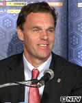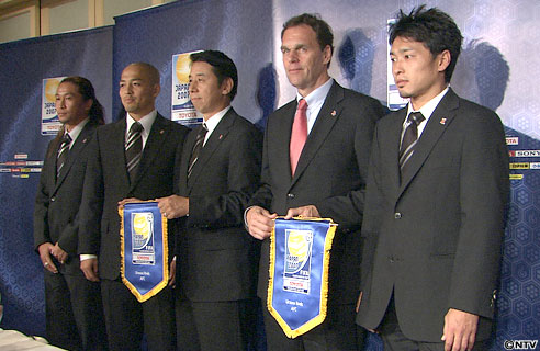 藤口光紀代表取締役社長、オジェック監督のほか、午前中の練習を終えたばかりキャプテンのMF山田暢久、MF小野伸二、MF岡野雅行の3選手も出席しました。