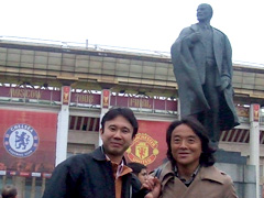 決勝は5月21日。昨年に引き続き、解説の北澤豪さんとの取材です。決戦の舞台はロシアの首都モスクワにあるルジニキ・スタジアム。かつては、レーニン・スタジアムと呼ばれており、そのスタジアム正面には堂々たる銅像がそびえ立っていました。思わず2人で記念撮影!