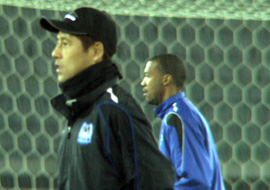 12月17日、マンチェスター・ユナイテッドと準決勝を明日に控えたガンバ大阪が“決戦の地”横浜国際総合競技場で最終調整を行いました。報道陣に公開されたのは冒頭15分のみでしたが、冷たい雨の中、選手たちは一様に軽快な動きを見せていました。大一番を前に気負いは感じられないほど。アデレード戦で右ひざを痛めたMF二川孝広は別メニュー調整となり、明日の出場は微妙。また、会見には西野朗監督とキャプテンの山口智が出席し、意気込みを語りました。