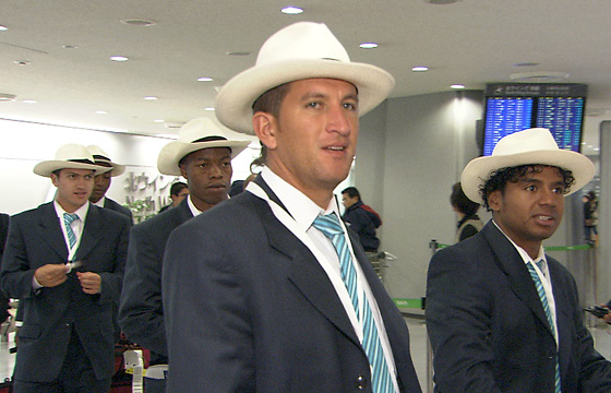 「長旅だったので、無事着いてほっとしている。いい大会になるよう頑張りたい。今は我々が夢見たように、物事が運ぶことを願っている。正直、長いフライトだったので、かなり疲れている。まずはゆっくり休んで疲れをとって、練習に取り組みたい。この帽子は、エクアドルを出る時に配られたんだ。エクアドルをしっかりアピールしてくるようにってね。」