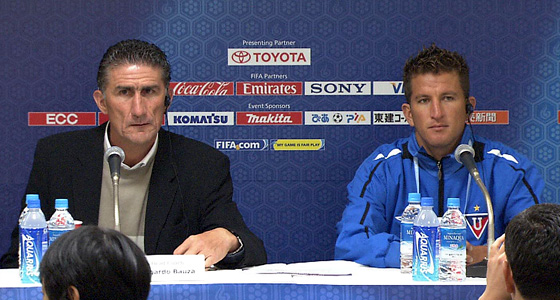 「リガ・デ・キトはいいチームだと思うので、そういうことは関係ない。今を生きるのが大事だと思うし、今日も歴史の1ページ。南米王者としてこの場にいるのだから、明日の試合は勝たなければならない。ぜひともマンチェスター・ユナイテッドに挑みたい。南米王者の名をかけて、優勝したいと思う。」