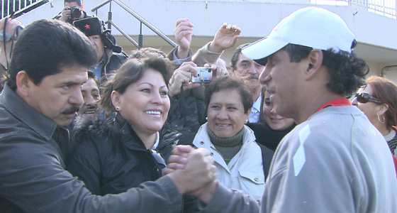 12月19日、マンチェスター・ユナイテッドとの決勝に向け、リガ・デ・キトが練習を行いました。エクアドルから着いたばかりというファン15人がかけつけ、選手たちを激励。握手攻めにあった選手たちも、はるか彼方の母国からかけつけたファンの激励に、うれしそうでした。