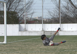 また、この日の練習では、司令塔のMFマンソがにGK転向?!実は、GKとしてプレーするのが好きだと言うマンソは、時々選手の練習相手としてゴールマウスに立って気分転換をするそうです。