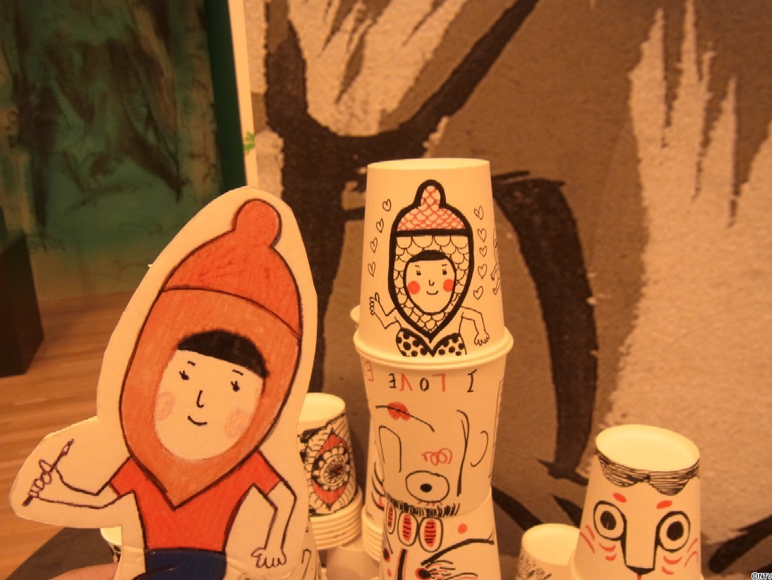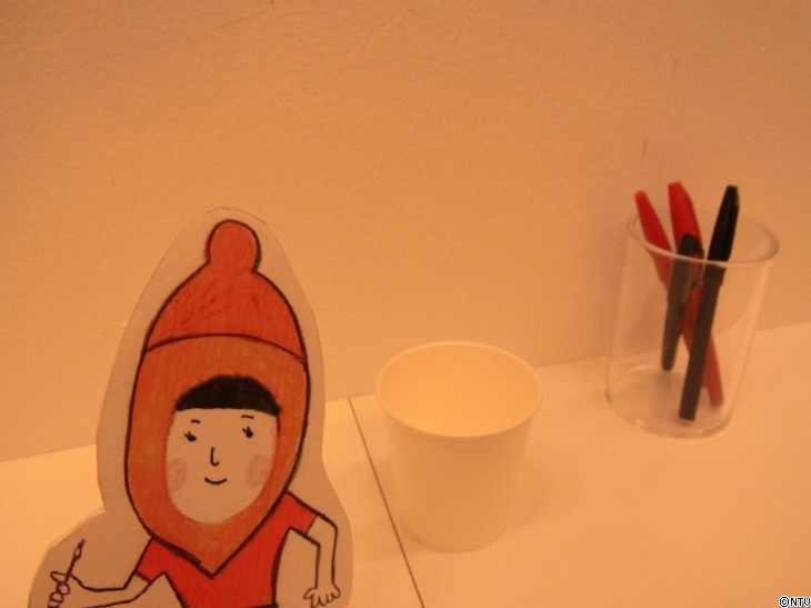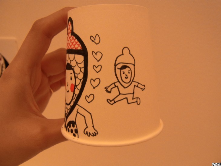 紙コップに、大切な家族や友人、大好きな動物の絵を描いて、
