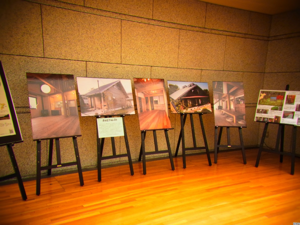会場には、実際にサンブスギで作った家の写真のパネル展示や、