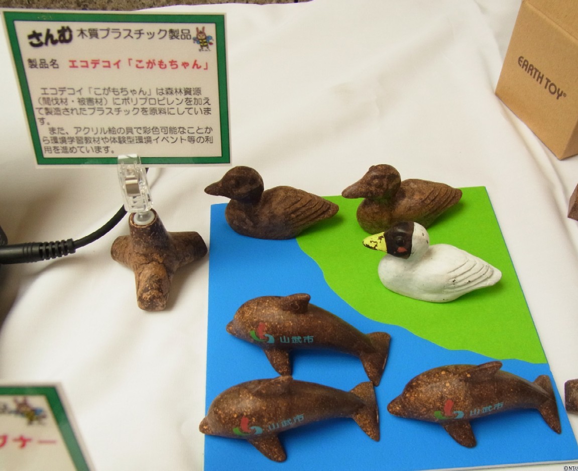 間伐材にポリプロピレンを加えて作った木製プラスチックを原料にした