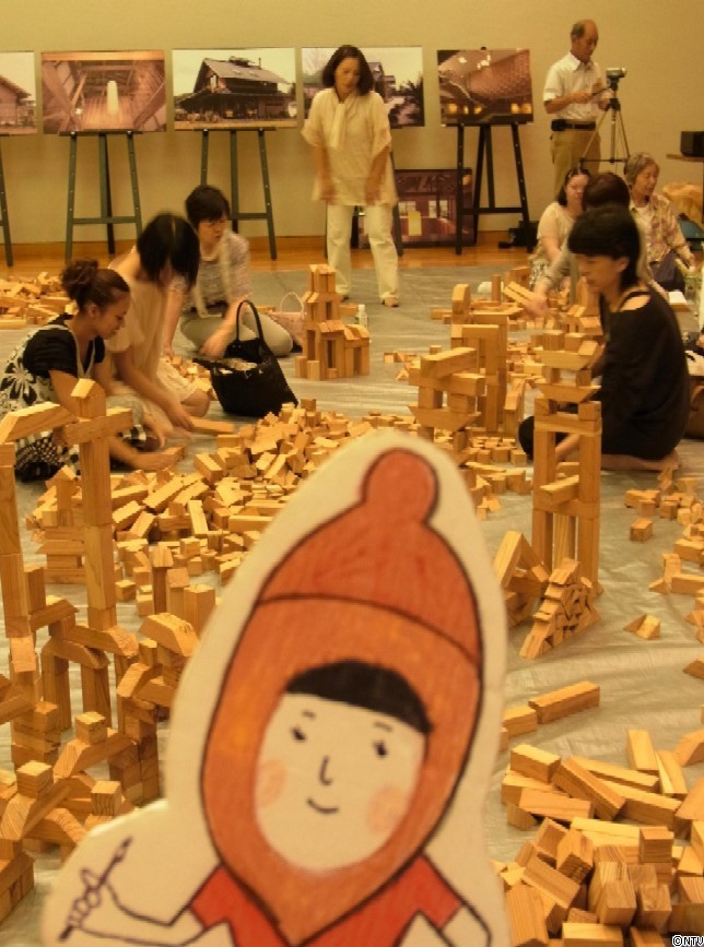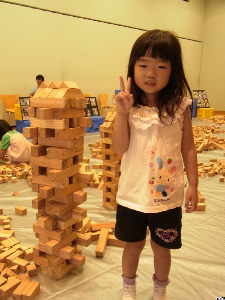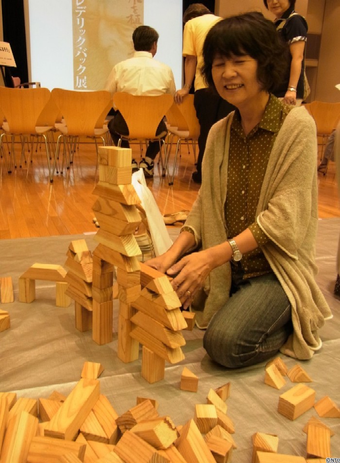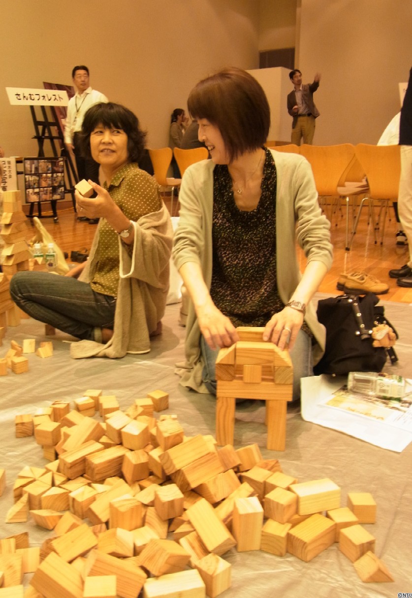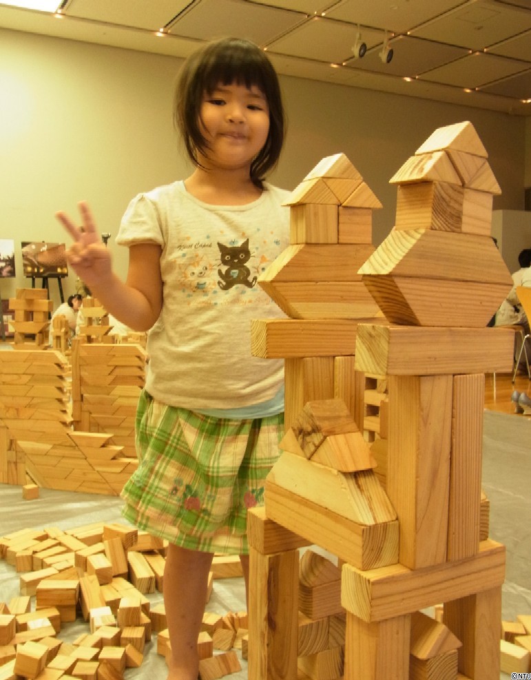間伐材から作った、およそ7000個のつみ木を用意し、