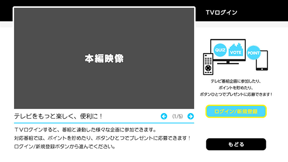 - 1.プレゼント応募画面で「テレビで応募設定」ボタンを押すと、「TVログイン」画面に移動します。