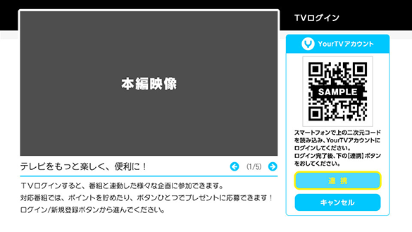 - 4.ログイン後、データ放送画面右下の【連携】ボタンを押せば設定完了です。【連携】すると自動的にプレゼント応募画面に戻ります。