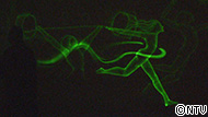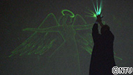 「企業秘密なんですが、塗料を塗って、筆の代わりにしてペンライトで絵を描いています。ペンライトにも秘密があって、市販されているものではないです。これで描いています。」