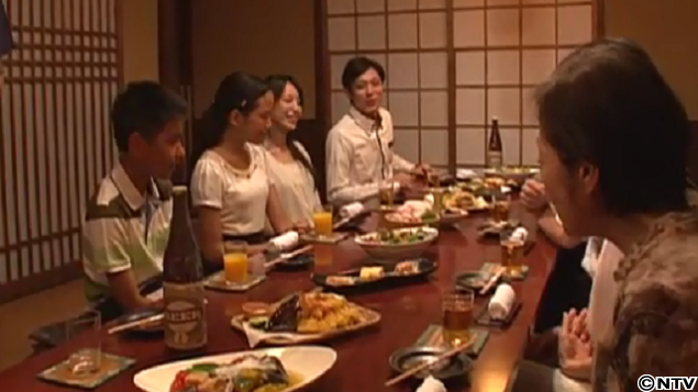 とある割烹料理店で中学1年の長男、小学校5年の長女、その両親と祖母。
