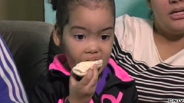 一見ごく普通に見える3歳の少女。実は...アゴが大きく腫れている。