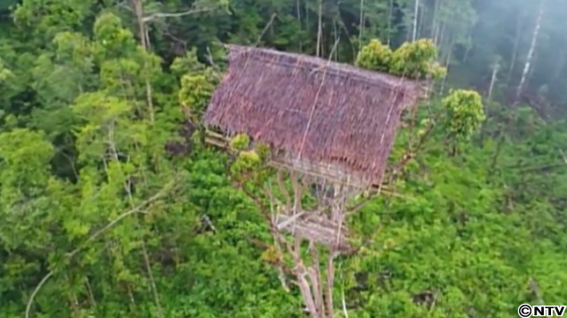 死を招く悪霊から逃れるために高い木に家を建てたというコロワイ族。