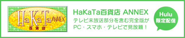 個性あふれるアイドル“HKT48”を売り出すアイドルのデパート 「HaKaTa百貨店」の3号館がついにオープン!! 指原莉乃がトップバイヤーとなり、一流芸能人ゲストに メンバーの魅力を余すところなく売り込みます!!! 2012年10月~2013年3月まで、2クールにわたって放送された「HaKaTa百貨店」&「2号館」。あれから2年、いまや大人気アイドルグループに成長したHKT48。いまもっとも気になる彼女たちを売り出すべく、“新商品”も追加して、いよいよ3号館がオープン! MCはバラエティで大活躍中の指原莉乃。 バイヤーとなった指原が売り込むのは・・・ AKB48で渡辺麻友とWセンターを務めた宮脇咲良、HKT48のセンター兒玉遥、総選挙にランクインした田島芽瑠、朝長美桜、博多が誇るクールビューティー・松岡菜摘、森保まどか。そして“なこみく”こと田中美久&矢吹奈子の中1コンビなど。 フレッシュな商品の魅力を、さまざまな企画で売り込んでいきます! しかし、来店するお客様は、「HKT48に興味がない&ひょっとしたら嫌いかもしれない!?」というアンチHKT48の一流芸能人の方々。そんなお客様に、HKT48のメンバーは認めてもらえるのか? 誰がお客様を振り向かせて“推しメン”としてお買い上げいただけるのか!? さらに、若手メンバーがMCに挑戦する新コーナー「HaKaTa百貨店ANNEX」もオープン! 指原がMCデビューを果たしたのは、本家「百貨店」。 そこで『指原に追いつけ、追い越せ!』をコンセプトに、人気メンバーがMCを担当し、トークやゲームなどのオリジナル企画に挑戦!