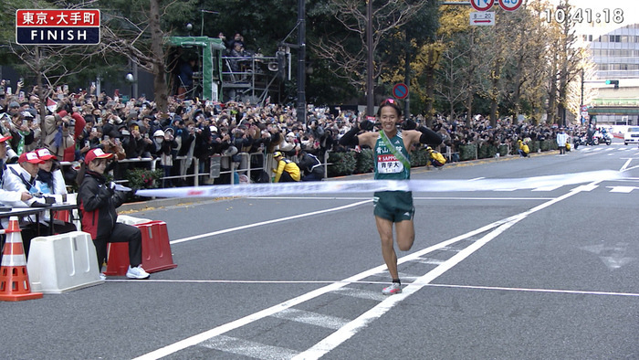 ゴール地点の大手町では、青山学院大のアンカー・小河原選手(1年)がゴールテープを切り、青山学院大が2年連続8回目の総合優勝。総合記録は前回大会で青山学院大が記録した10時間41分25秒を更新する10時間41分19秒となり、大会新記録。また、小河原選手は1時間08分27秒で10区区間賞。