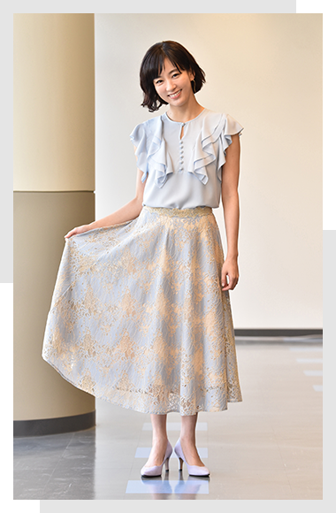 30代の夏美は仕事では後輩を指導する立場で、強めの印象があるので、私服は女性らしく優しい雰囲気を大切にした、カッチリしすぎないコーデが基本です。