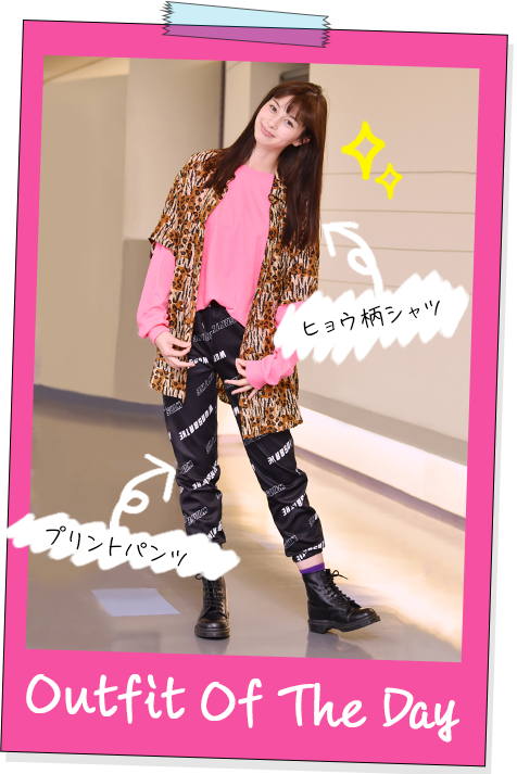 はるか流の通勤ファッション。アウターはブルゾンが多かったはるかですが、5話からはシャツを取り入れています。古着リメイクのビッグシャツはヒョウ柄のフリルがポイントで、はるか定番のヒョウ柄レギンスとも相性抜群!