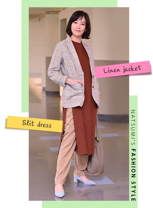 夏美は大人のきれいめオフィスカジュアルで、