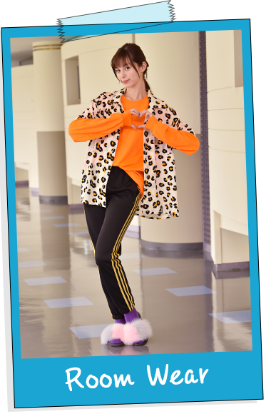 夏美や祐輔と部屋で過ごすシーンのはるか。シャツは古着屋さんのオリジナルでメンズのもの。ポップなヒョウ柄のデザインが他にない感じですよね。