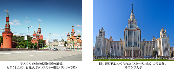 もちろん、モスクワにもヨーロッパ風の建築や街並みはありましたが、私の頭に強く焼き付いているのは、街のあちこちに立っていた、玉ねぎ型の屋根をいただく、異国情緒あふれるロシアの聖堂。そして、「社会主義の発展と革命の達成を、摩天楼で表現し、労働者を鼓舞することを狙って」(by ウィキペディア)ソ連時代に作られた「スターリン様式」の超巨大建築など。とくにロシア正教会の建築というのは独特で、その美意識といい、雰囲気といい、なんというかロシア古来の「土着」の匂いを感じました。