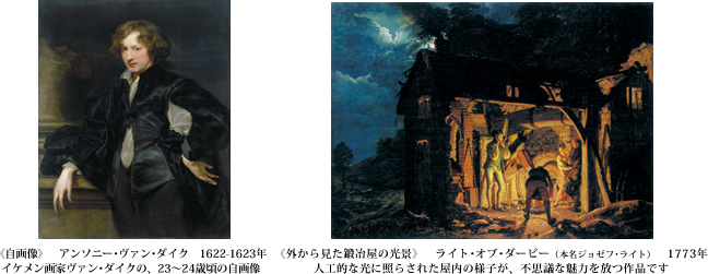 本展では、ヴァン・ダイクのハンサムな《自画像》、光の表現が不思議な魅力を放つライト・オブ・ダービーの《外から見た鍛冶屋の光景》など、約25点がエカテリーナのコレクションからの出品です。
