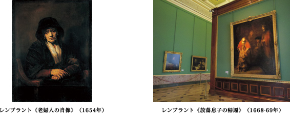 ざっと見ただけでも、エルミタージュ美術館にはこんな名品があるのですが、その中でも目を見張ったのは、17世紀オランダ絵画の巨匠、レンブラントのコレクションです。本展では《老婦人の肖像》(1654年)がお目見えする彼の絵画は、「レンブラントの間」にまとめて紹介されています。ものの本によると、そのコレクションの数は20点以上。しかもその中には、《放蕩息子の帰還》(1668-69年)、《ダナエ》(1636年)、《フローラに扮したサスキア》(1634年)、《イサクの犠牲》(1635年)……と、美術書でお馴染みの名品が数々含まれています。実を言うと、レンブラントの代表作《夜警》(1642年、アムステルダム国立美術館)や、《テュルプ博士の解剖学講義》(1632年、マウリッツハイス美術館)を所蔵するオランダの美術館に行った時よりも、「レンブラントを観た!」という気持ちになりました。