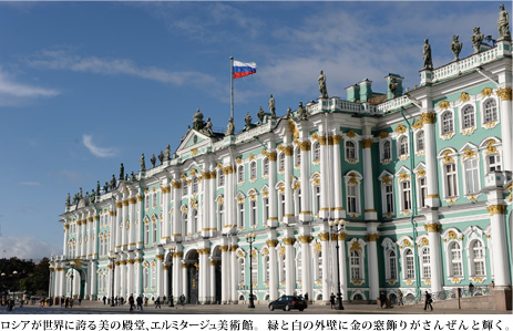 モスクワに次ぐロシア第二の都市サンクトペテルブルク。現在フィンランド湾にそそぐ大河・ネヴァ川に壮麗な街並みを映すこの街は、18世紀初頭、森林や沼地を開拓してたった10年間で建設された。絶大な権力と意志をもってその建設を推し進めたのは、ロシアの西欧化と近代化に尽力したピョートル1世(大帝、1672-1725)。街は皇帝の守護聖人「聖ペテロ」にちなんでサンクトペテルブルクと名付けられ、ロシア革命後、首都機能がモスクワに移る1918年までの約200年間、帝政ロシアの都として繁栄した。もしあなたがモスクワに行ったことがある人なら、サンクトペテルブルクが、いかに「非ロシア的」であるかがわかるだろう。ロシア正教の伝統が息づく質実剛健な政治都市モスクワに比べると、「ヨーロッパへの窓」たる意図をもってつくられたこの街はあくまで優雅。メインストリートであるネフスキー大通りやその周辺には、元貴族の豪邸や巨大な寺院、ヨーロッパ風の瀟洒な建築が立ち並び、ネヴァ川左岸には、ロマノフ王朝の歴代皇帝が住んだエルミタージュ美術館や、宮殿広場に両翼を広げる半円形の旧参謀本部が威容を誇る。夜には美しくライトアップされた街がひときわ幻想的なサンクトペテルブルクは、帝政ロシアの歴史と伝統を肌で感じることができる、まさに「美の都」なのである。