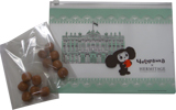紅茶味のキャンディーにアップルソースを閉じ込めた、ロシアのティータイム気分を楽しめるソフトキャンディーです。チェブラーシカの描かれたポーチは大きめサイズのビニール素材なので、旅行用やデイリーにも活躍しそうです。
