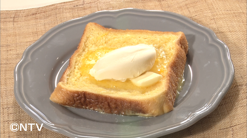 ⑥ チーズをのせたトーストにベーコン、目玉焼き、雪見だいふくをのせる。