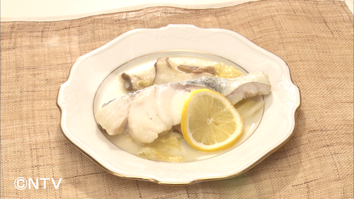 ③①のタラを②の上にのせ(A)をかけ、輪切りのレモンをのせる。ふたをして冷凍庫へ