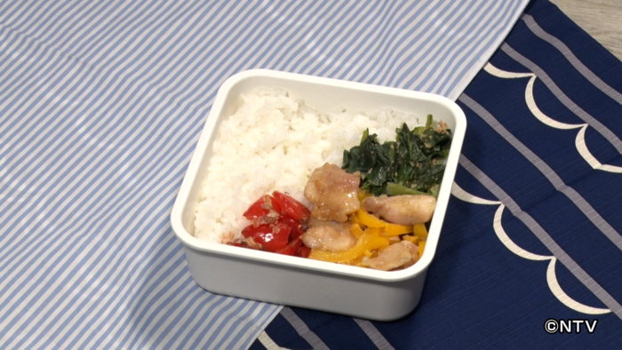冷凍庫からコンテナを取り出し、ふたを斜めにのせて600Wの電子レンジで5分加熱する。