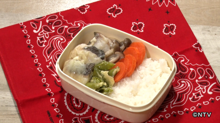 しめじ、タラの順にコンテナに入れ(A)をかける