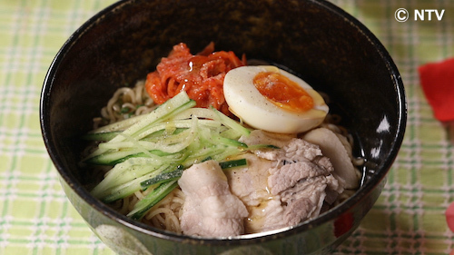 ③お好みで白菜キムチをのせゆで卵をトッピングする