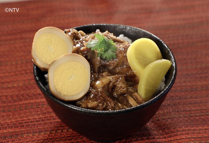 ⑤器にごはん、④のカレーを盛り、ゆで卵または温泉卵をのせてパセリを散らして完成