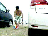 ふと車を見ると…なんと中には、水着に着替え中の若い女性が!