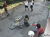 そう、まりの視力は裸眼で0.1。 メガネをかけないとぼやけて見えてしまう。 おばさん 「メガネなしで自転車に乗るなんて、交通違反よ!」 まり 「えっ!」