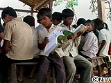 教科書も足りず、数人で一冊の139名がひとつの教室で学んでいる。