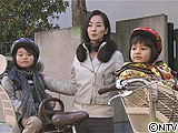 主婦B 「あら〜大変そうね」 自転車には2人の子供。 前に一人、後ろに一人。