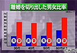 妻から離婚を切り出した割合は、 各世代とも夫からの離婚のおよそ2倍。