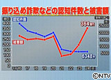 警察などのPR活動により、 振り込め詐欺の件数は減っている。 しかしその被害総額は、昨年過去最高の364億円にまで達した。 これはつまり、1件あたりの被害額が増えているということ。