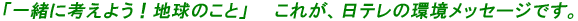 | | 日本テレビは、番組や各種イベントを通じて、環境保全の重要性を広く国民にアピールします。これを通じて、メディアとしての社会的責任を果たし、環境保全に寄与します。