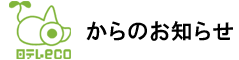 | | 日本テレビの企業活動に相応しい環境マネジメントシステムを構築し、資源、エネルギーの有効利用を図ると共に、廃棄物の減量化、リサイクルを推進します。