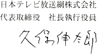 6月29日、開催されました日本テレビ放送網(株)第72期定時株主総会及び取締役会において、新たに代表取締役社長に久保伸太郎(61)が選任され、就任いたしました。